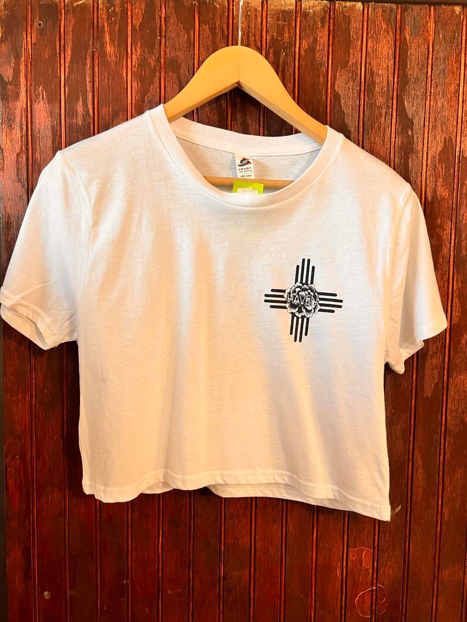t-shirt. Large colored graphic on back, and small front left chest graphic. Graphic also available in