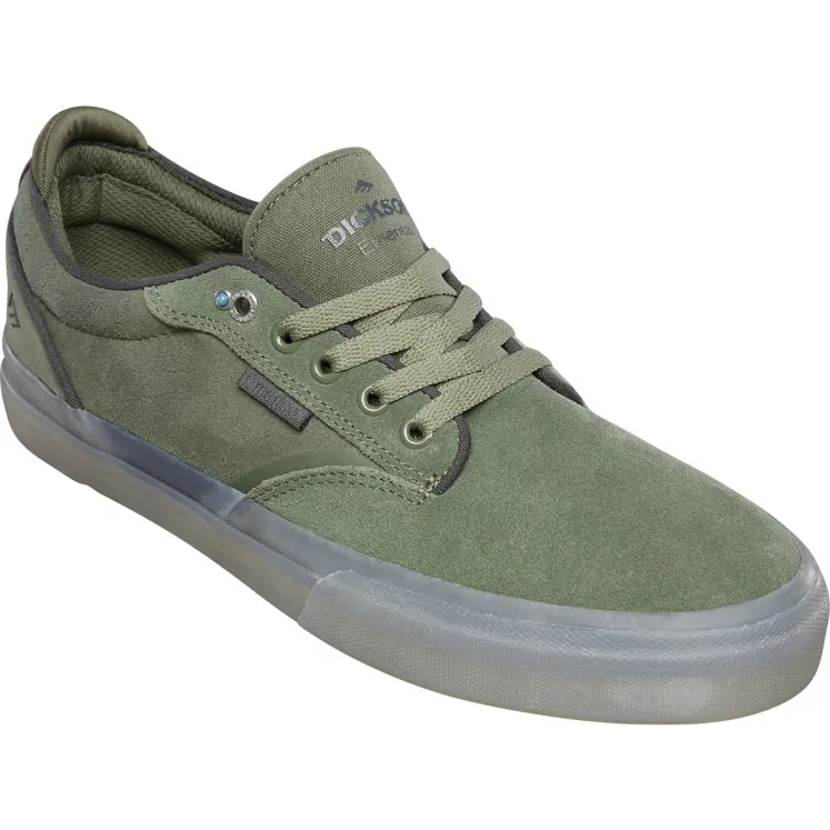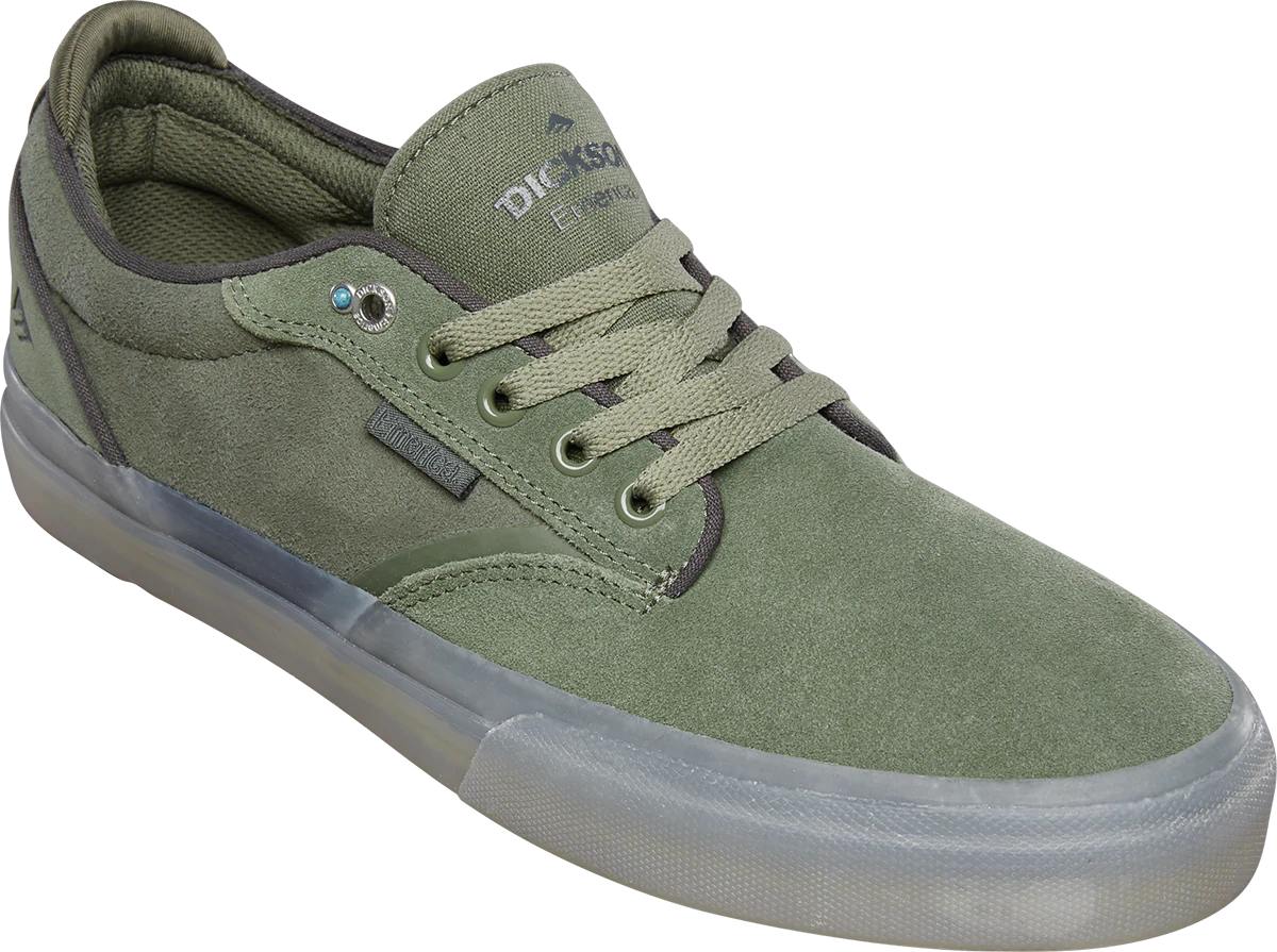 Emerica is proud to present Jon Dickson's first Emerica pro model, The Dickson. The Dickson features Flick Shield, a rubber underlay designed to last longer while also having our Desert Grip tread on the outsole for better grip and a polyurethane G6 insole for impact resistance with custom artwork by Jon Dickson himself.